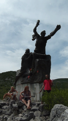 Ruhiger Vormittag. Tiere gestreichelt, geduscht, geschwommen, E-Mails gecheckt, Handies werden aufgeladen. Gegen 12 Uhr geht es weiter Richtung Korce und Ohrid. Unterwegs kommen wir an einem alten Partisanen-Denkmal aus sozialistischer Zeit vorbei. Da muss natürlich Bella Ciao gespielt und gefilmt werden. Erst in Frankfurt finden wir heraus, dass hier von der Deutschen Wehrmacht als Vergeltungsaktion gegen Partisanen ein Massaker im Dorf Borova verübt wurde, bei dem über 110 Zivilisten vor allem Frauen, Kinder und alte Leute umgebracht wurden.