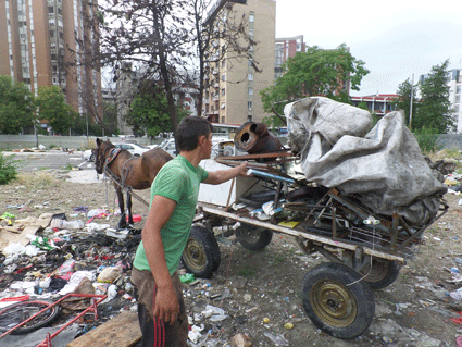 Am nächsten Tag geht’s weiter nach Skopje. In Skopje besuchen wir den alten Basar. Wir kaufen in einem ganz kleinen Laden in der Altstadt Opankis, das sind schöne, geflochtene Lederschuhe, die es nur dort gibt. Dann will Nele noch mal kurz nach Shutka, das ist die größte Romastadt Europas.