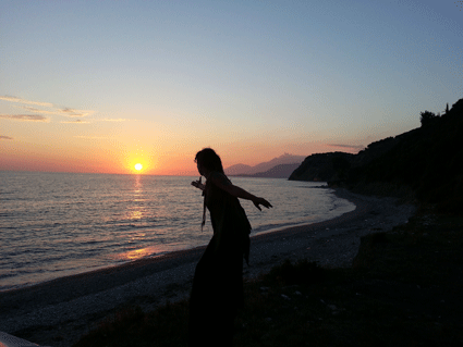 Emanuel und Nele sind krank, wahrscheinlich eine Magen-Darm-Infektion. Gemeinsames Mittagessen mit Planung der abendlichen Kulturaktion bei der Veranstaltung. Gegen Spätnachmittag fahren/laufen wir hinüber zu dem anderen Strand und der kleinen Veranstaltung und machen dort Jonglage, Feuerspielen und Live-Musik mit akustischen Instrumenten. Stöpsel läuft auf Stelzen bei Sonnenuntergang und Emanuel macht eine Laser-Show mit Licht-Spielzeug aus Prizren. Adee, der Partyveranstalter, der in Tirana am Amt für Tourismus arbeitet und uns eingeladen hat, ist auch da. Er und andere Partygäste machen mit beim Feuerpoi spielen. Ausserdem wird ein gemütliches Lagerfeuer gemacht. Um 11 Uhr packen wir wieder zusammen und fahren bzw. laufen zurück zum Lagerplatz.