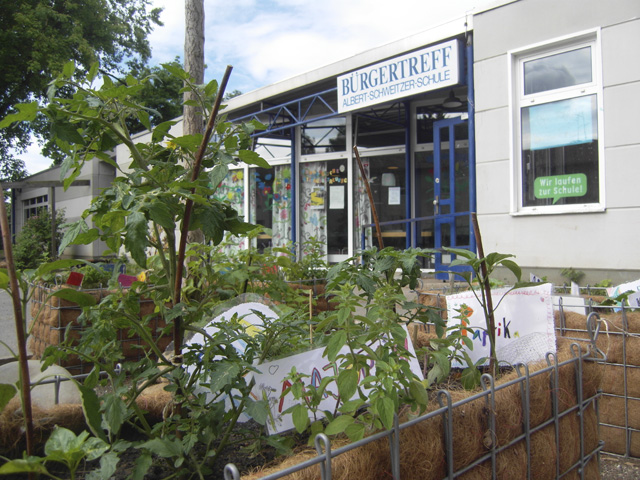 Der Playground unterstüzt die Stadtteilbotschafterin Karen Schewina bei ihren Urban Gardening Projekten am Frankfurter Berg. Erstes Projekt: Umsetzung eines Schulgartens an der Albert-Schweitzer-Schule seit Mai 2013.