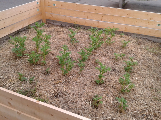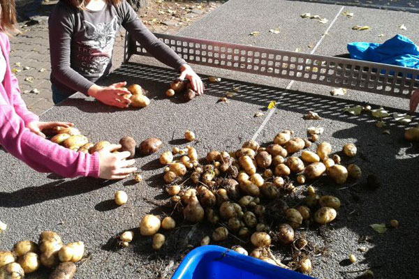 vorgesehen ist. Aus dem Heubeet konnten die Kinder 160 Kartoffeln ernten, die sie nächste
