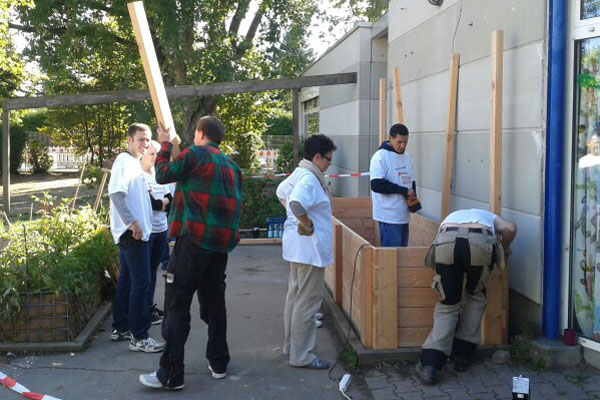 Am 27.9. wurde im Rahmen des Malteser Social Day ein neues Hochbeet mit Rankgitter vor