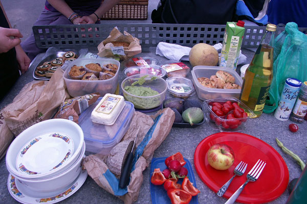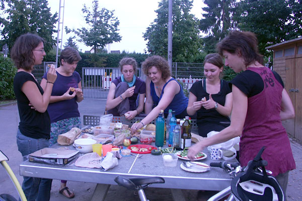 Im Vorfeld wurden Themenbeete zusammengestellt: in einem Beet wachsen Pflanzen, die für Tee verwendet werden können, in dem anderen die Zutaten für Tomatensauce, Kürbissuppe oder einen fruchtigen Sommersalat mit Erdbeeren.